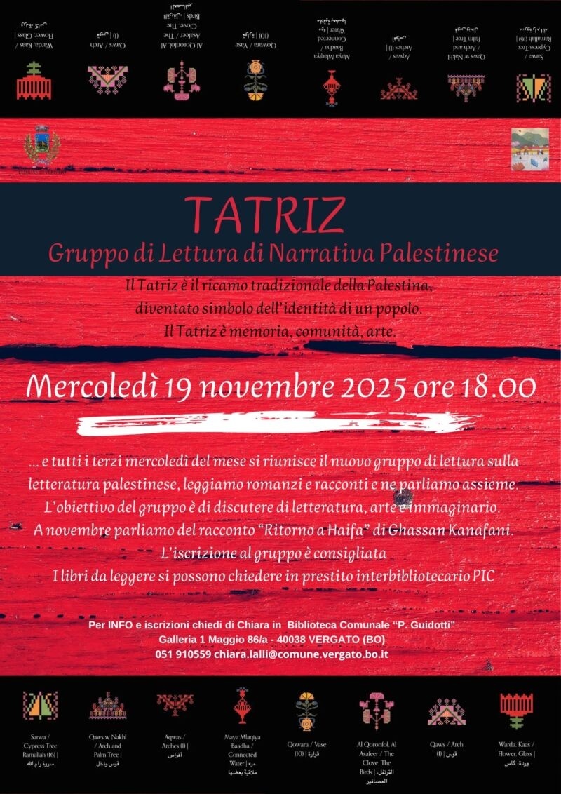 Tatriz è anche il nome del nuovo gruppo di lettura della biblioteca comunale di Vergato, dedicato alla narrativa palestinese